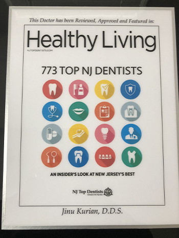 Our experienced team knows how to make every patient feel right at home from the moment they walk through our front door until final check out. In fact, our patients love our service so much that we have won many awards, such as Jersey Choice Top Dentists by New Jersey Monthly. Plus, Dr. Kurian has been the New Jersey Herald’s Ask the Expert in dentistry for more than seven years. Just one visit, and you will see why!